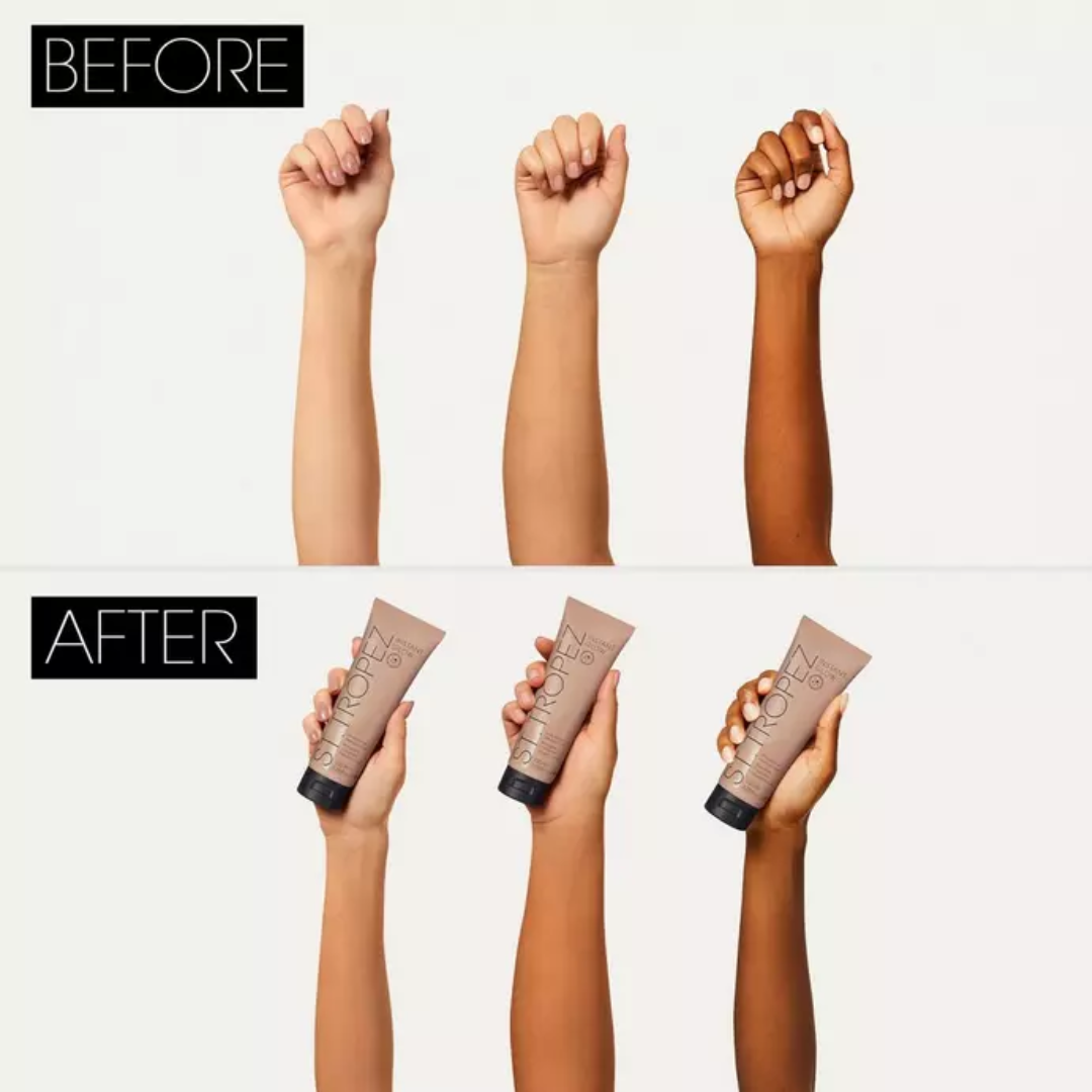 SKIN PERFECTING IN AN INSTANT St.Tropez Instant Glow Face & Body Bronzer is a next generation, no commitment body bronzer for an instant skin perfecting glow that lasts all day with streak-free results that are transfer and water resistant. Simply apply and go, rinsing off as desired.